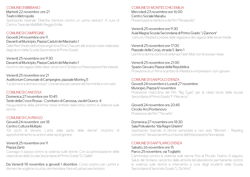 Un ricco calendario di iniziative proposte dal Forum Donne Val d'Enza con i Comuni, le scuole e le associazioni del territorio dell' Unione Val d'Enza In collaborazione con: