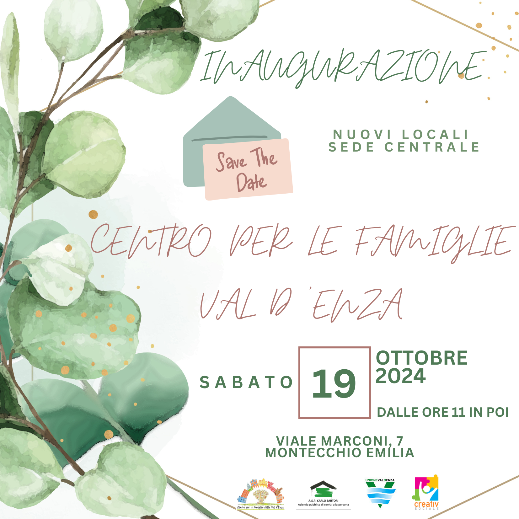 Vi invitiamo all'inaugurazione della nuova sede centrale del Centro per le Famiglie Val d'Enza, in programma Sabato 19 Ottobre 2024.
