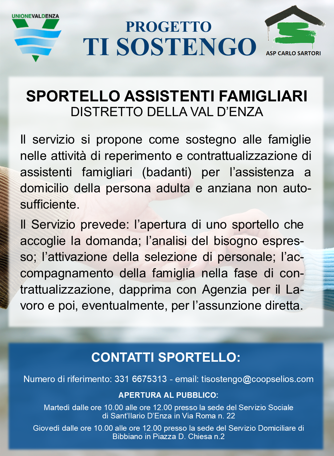 SPORTELLO ASSISTENTI FAMIGLIARI: consulenza e accompagnamento all’individuazione e contrattualizzazione di assistenti familiari (badanti)