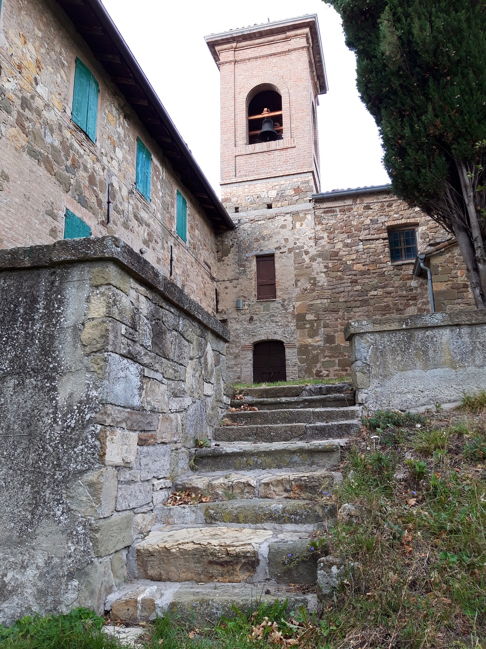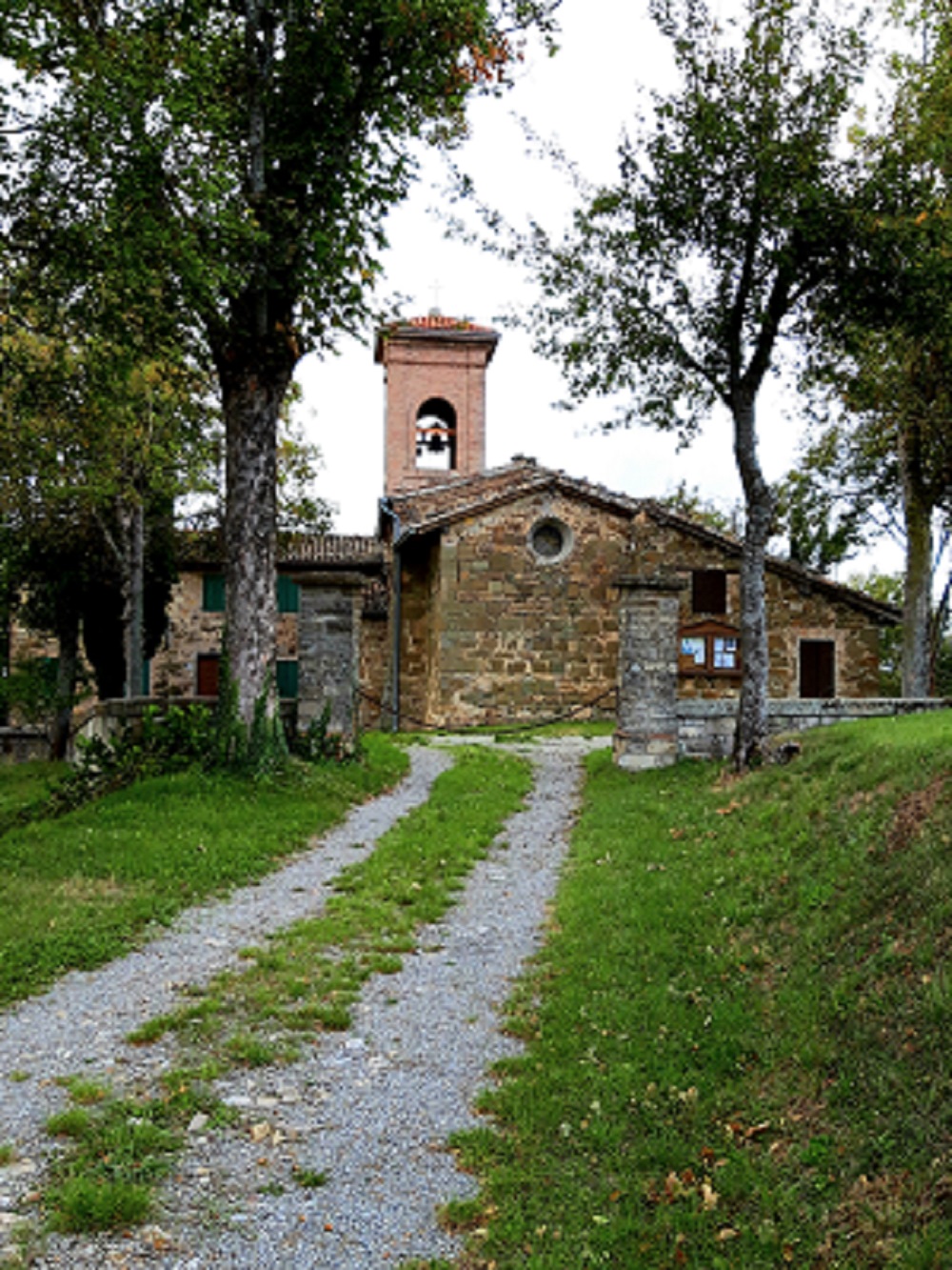 Dedicata a San Bartolomeo Apostolo, si trova in posizione panoramica fra le colline, in zona elevata e circondata da basso muretto in pietra concluso all'ingresso da due pilastri.