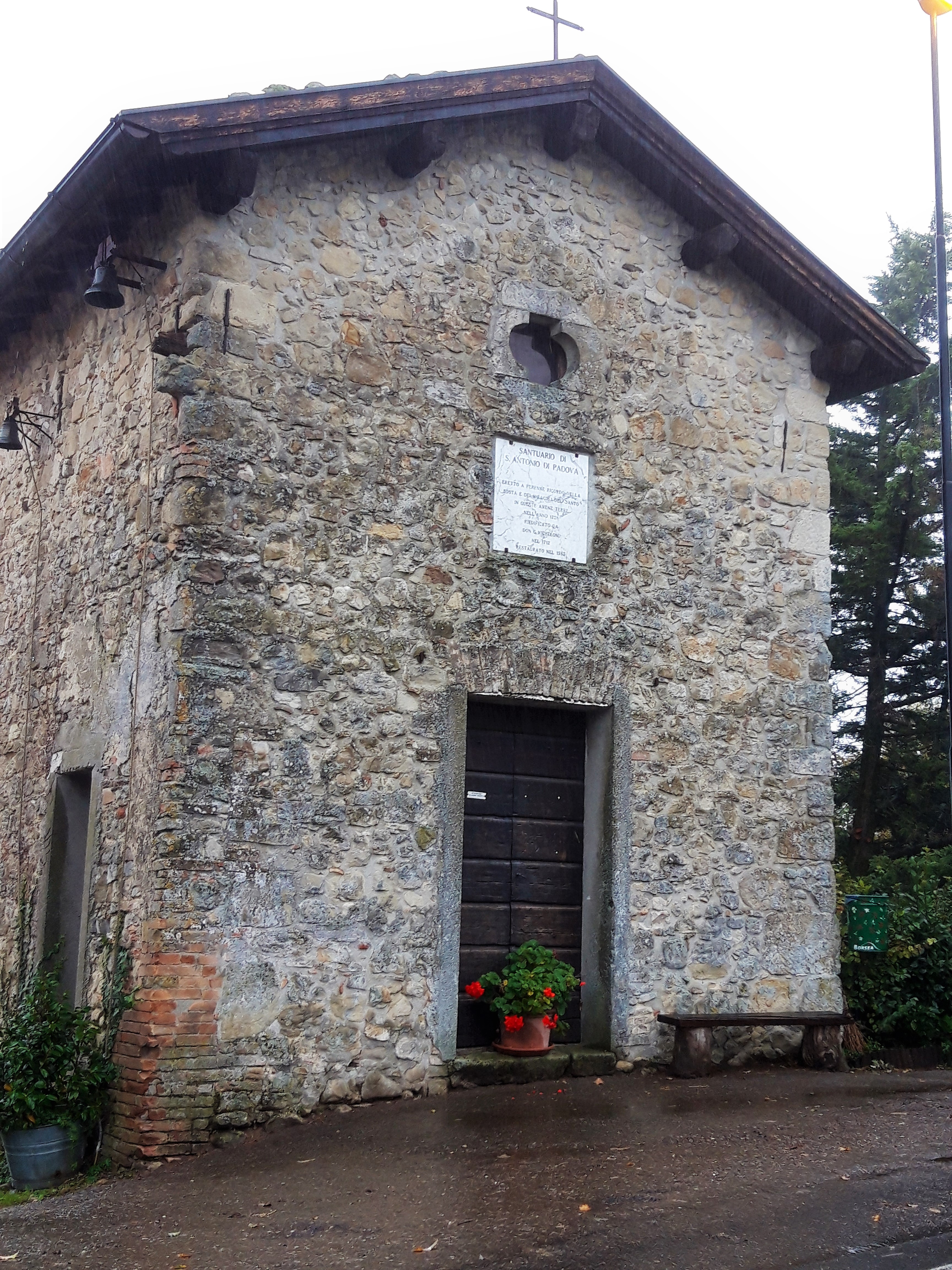 L’edificio primitivo (forse risalente al XIV sec.) è stato completamente ricostruito nel Settecento e presenta un fronte a capanna e struttura in pietra.