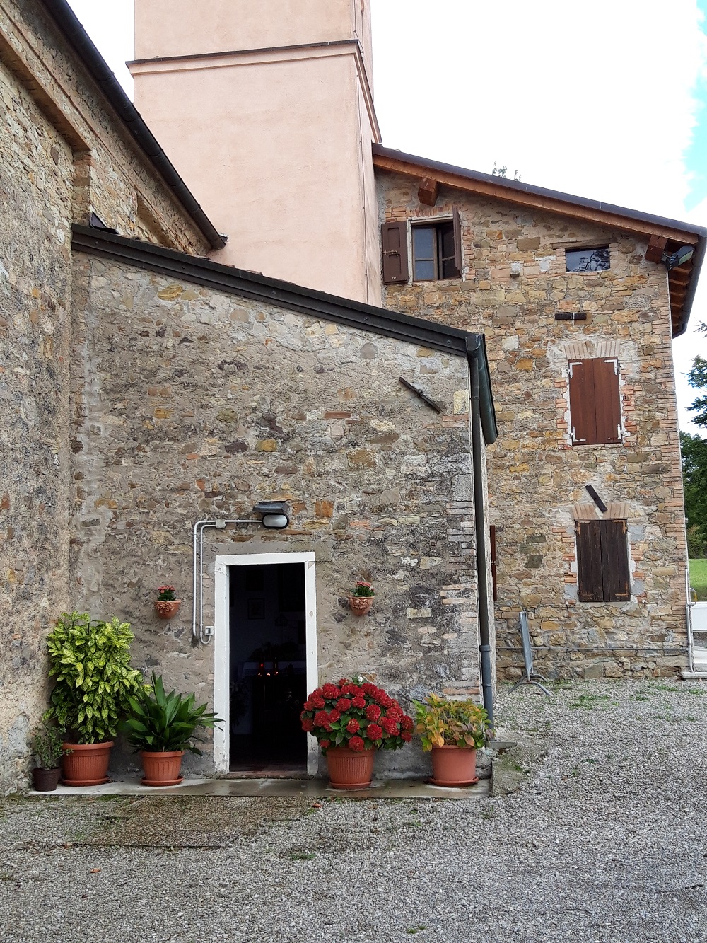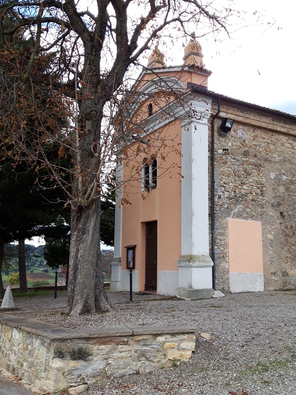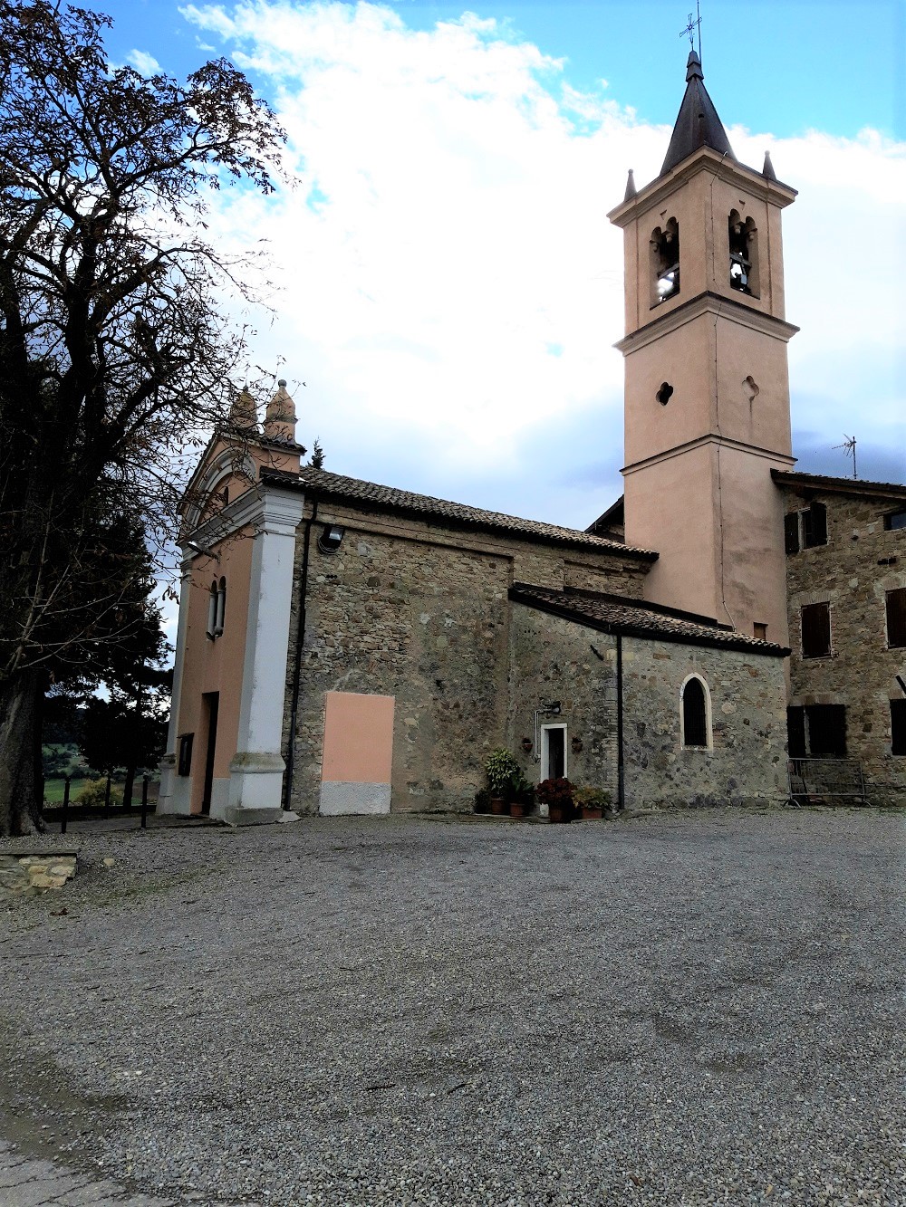 La chiesa è situata su un alto colle, rivolta in direzione della vallata del fiume Enza. Presenta una facciata a capanna tricuspidata con paraste di ordine dorico che sorreggono la trabeazione e un timpano di forma arcuata. L'aula liturgica è ad una sola navata, ripartita in due campate con copertura a vela e a cupola. L'abside risulta di forma quadrata e presenta una pavimentazione in cotto.