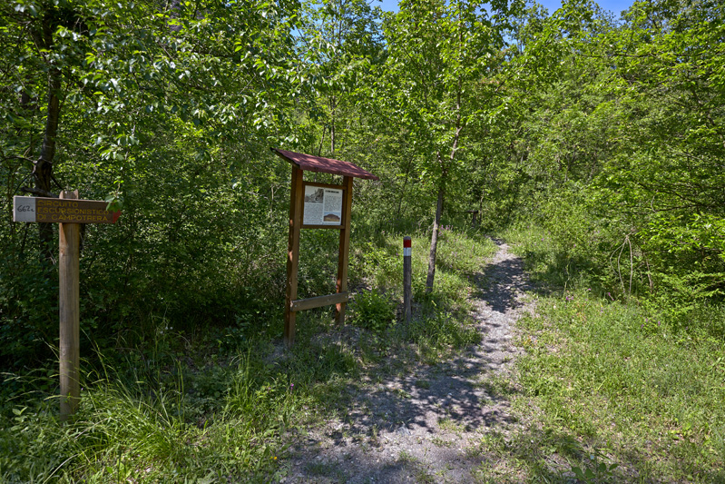 Nelle immediate vicinanze del rio Cerezzola e vicino alla passarella vi è la prima bacheca descrittiva della partenza del sentiero.